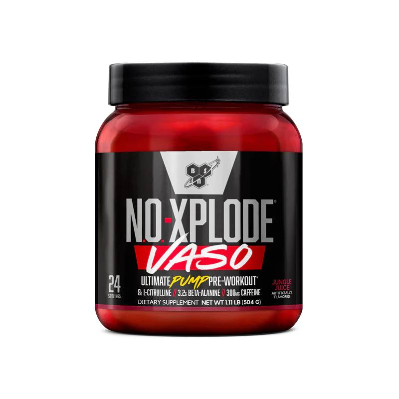 Each Serving of N.O.-XPLODE VASO Contains 8g of Citrulline and 1g of Creatine Nitrate NO3-T® to supply nitrates for nitric oxide precursors, topped with 25 mg of salaginella, hydrolyzed casein and resveratrol for next level pumps!* You also get a 3.2 g of beta alanine for endurance, along with energy and focus from 300 mg of caffeine and 37 mg of Yohimbe.* Available in 6 flavors.